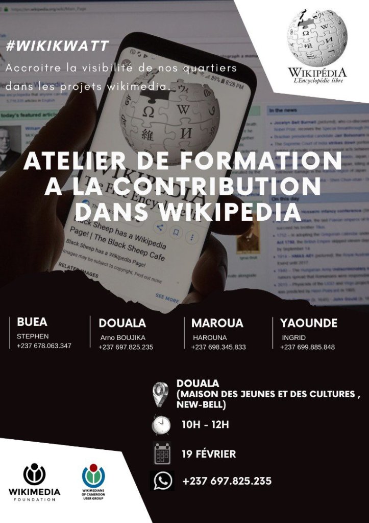 Samedi 19 février 2022, la maison des jeunes et des cultures de New-bell a accueilli une fourchette de jeunes passionnés du web au cours d’un atelier de formation dont l’objectif était d’accroître la visibilité de différents quartiers de la ville de Douala à travers des écrits qui mettent en avant différents aspects de ceux ci au travers de la plateforme wikipédia.