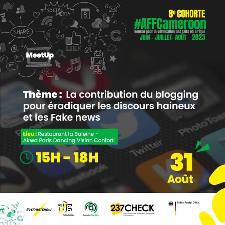 Un discours haineux est un discours imprégné de haine vis à vis d’un groupe. Depuis sa création en 2014, Defyhatenow milite pour la lutte contre les fake news et les discours de haine. Pour cette 8ème Cohorte de l’AFF Cameroon (Africa Factcheking Fellowship) dont il fait partie, Étienne TALLA face au public : » On sensibilise pour que le citoyen sache qu’il a une responsabilité sur ce qu’il diffuse » quant à l’apport de l’association dont il assure le censorat, » l’ABC (Association des Blogueurs du Cameroun) forme à la bonne pratique du blogging » .