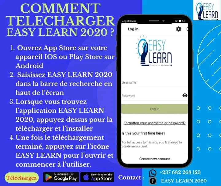 M.N : sur PlayStore, sur AppStore, tapez EasyLearn 2020 ça apparait et vous téléchargez, vous vous inscrivez. Vous y trouverez des ressources gratuites.