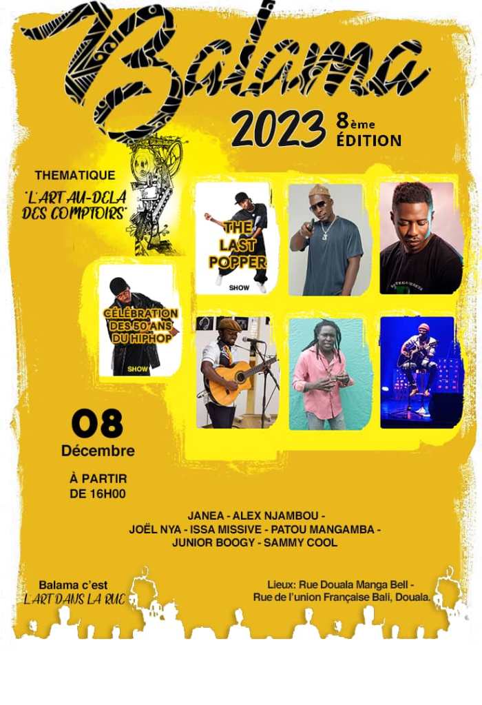 La nouvelle dynamique du BALAMA veut se constituer comme un commerce périodique dans l’imaginaire contemporain de nos marchés, habitués aux commerces de vivres. Le festival lui, installe dans les rues de Bali des comptoirs classiques de nos mamans, frères, sœurs, la diversité de la production artistique très souvent présente dans des lieux élitistes, dans une démarche populaire et facile d’accès.